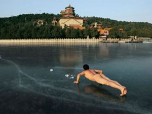 Um fotógrafo chinês foi destaque no prêmio World Press Awards por uma série de imagens em que aparece fazendo flexão pelado em diversos locais da China.